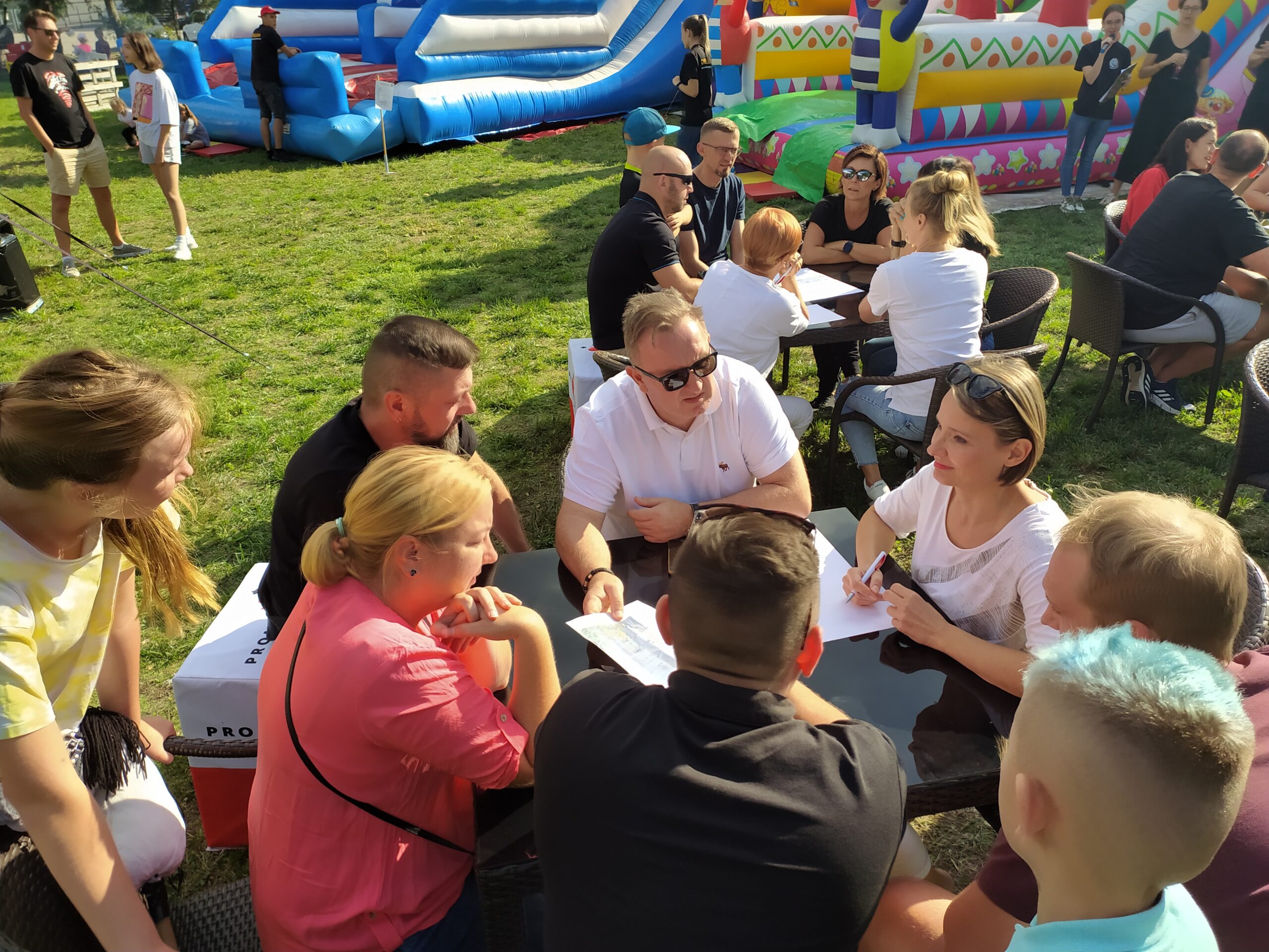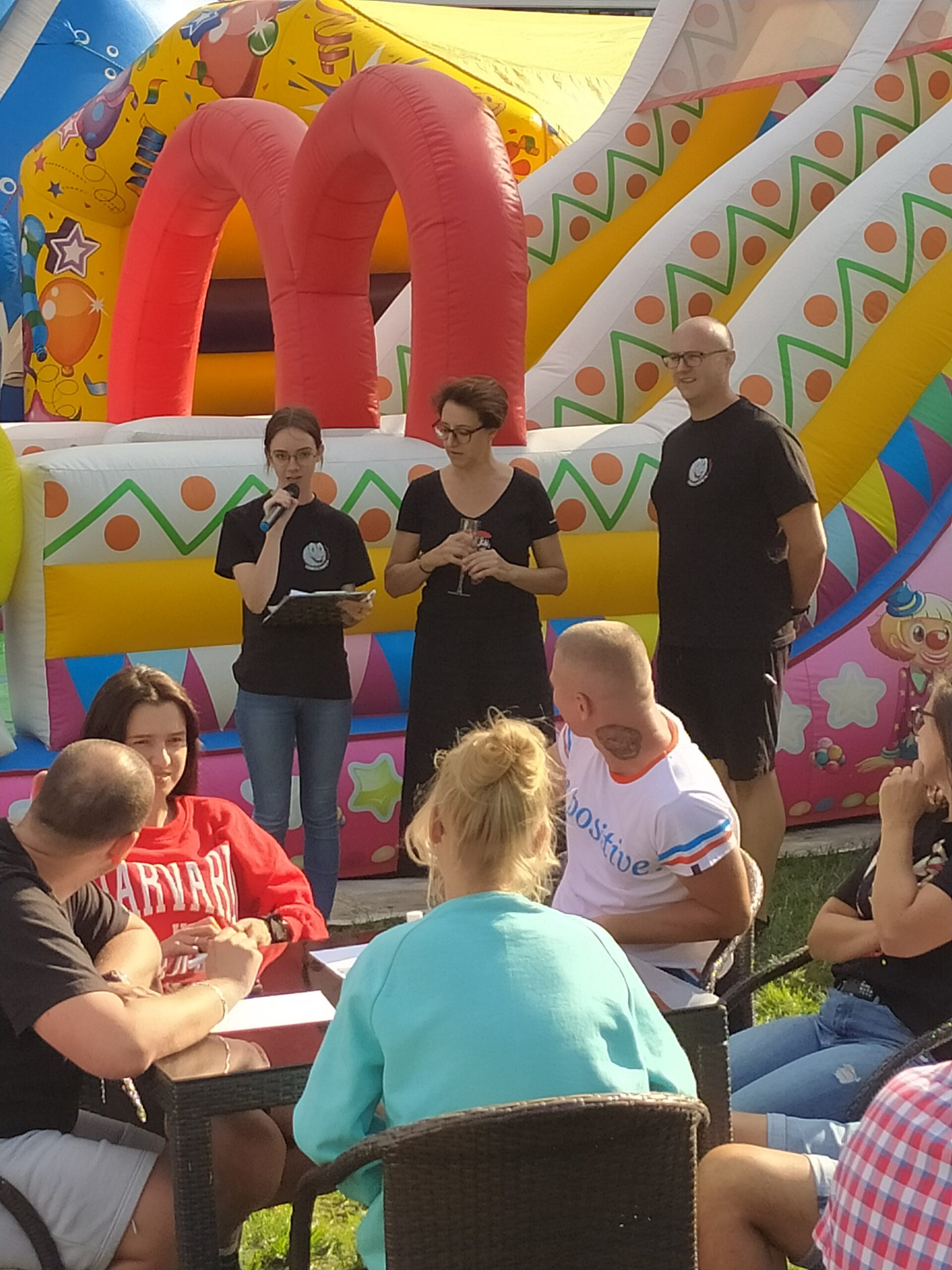 Zabawom, rozmowom i wspólnym uśmiechom nie było końca. Zmierzyliśmy się w konkursie wiedzy o firmie, konkurencjach sportowych, a także bawiliśmy rodzinnie z naszymi partnerami i pociechami. Było malowanie buziek, brokatowe tatuaże, dmuchane zamki i pyszne jedzonko – wszystko pod pieczą Rodzinnego Centrum Rozrywki Uśmiechnięta Planeta.